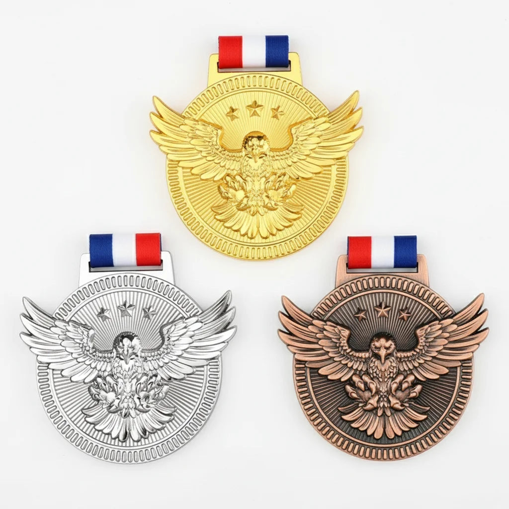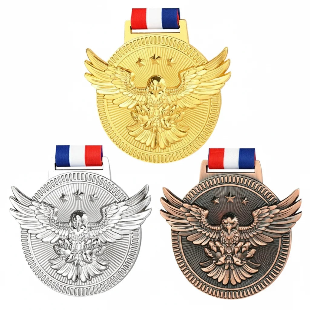 Our Patriotic Eagle Medals are crafted from high-quality metal, ensuring durability and a premium feel. They are designed to be cherished for years, a lasting symbol of achievement and national pride.